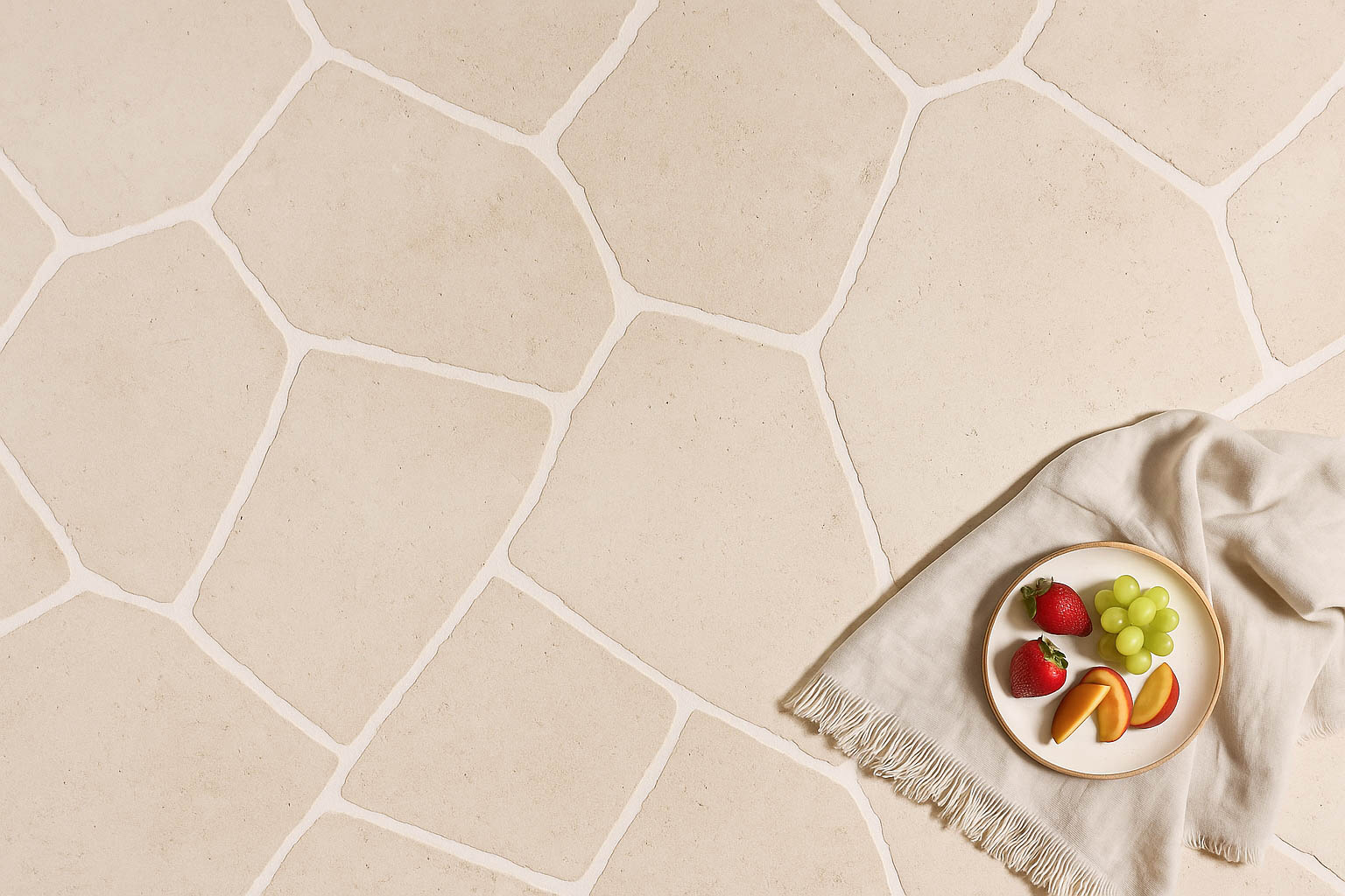 Callington Limestone Crazy Paving features soft beige tones and a natural, irregular finish. Ideal for patios, pathways, and outdoor areas, this durable limestone offers a P4 slip rating and timeless appeal. Available now at Cinajus.